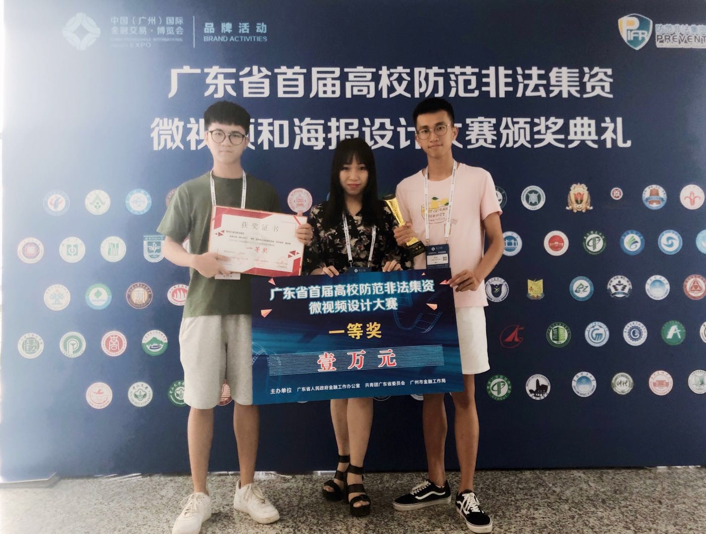 此外,学校大力鼓励学生参与广东省高校防范非法金融活动微视频和海报设计大赛。在首届大赛上,大学生媒体中心的钟思庆、莫世豪、赵颖聪和指导老师莫玮娟的微视频参赛作品《黑白成片》获微视频组一等奖;城建与环境学院叶慧芳同学的《掉进钱眼,一发不可收拾!》获得了海报设计组一等奖;创意设计学院李嘉琪、冯家乐同学的海报作品获得了三等奖。