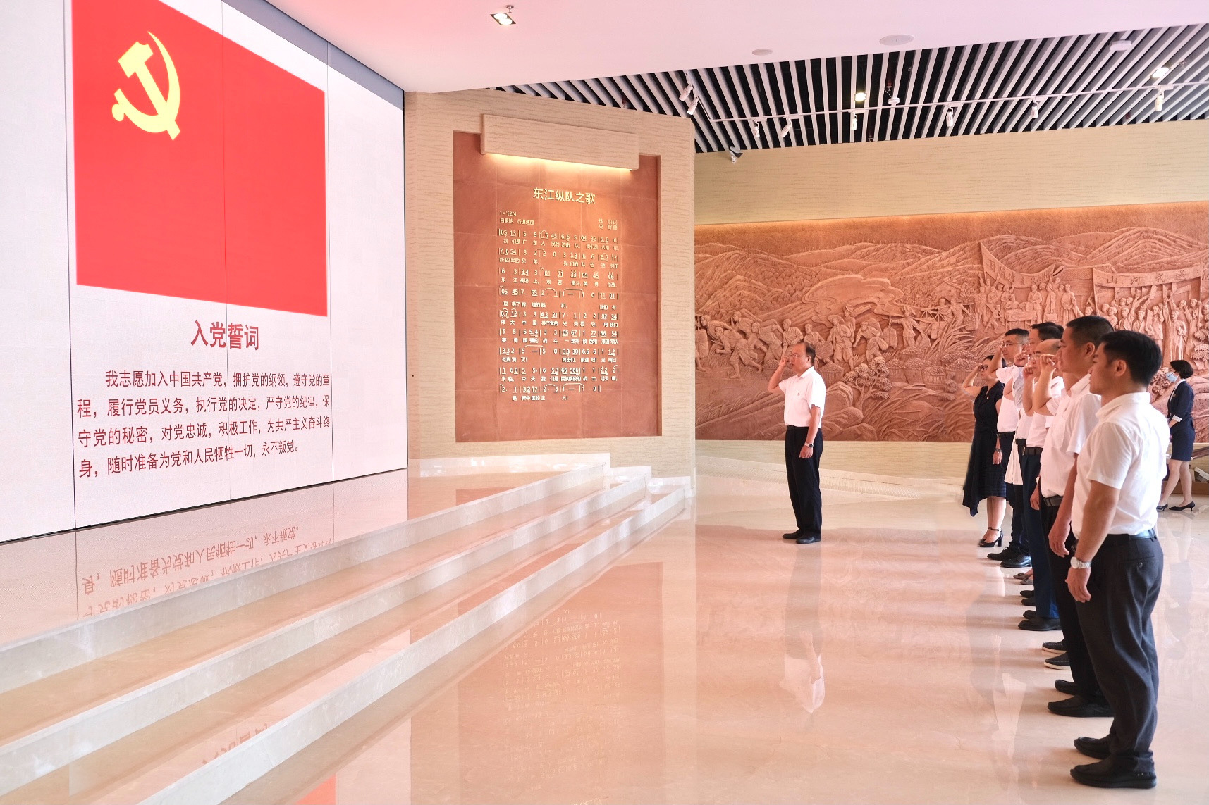 7月4日,学校党委理论学习中心组到广东东江纵队纪念馆开展革命传统教育,深入学习领会习近平总书记关于党的革命传统的重要论述,进一步传承红色基因,赓续共产党人精神血脉,推动党史学习教育走深走实。校领导章德胜、王卫平、高香林、黄兢、刘玉侠,党委委员杜鹏举、孔增强、李海冬、卢淑芳,党史学习教育领导小组办公室相关负责人参加活动。
