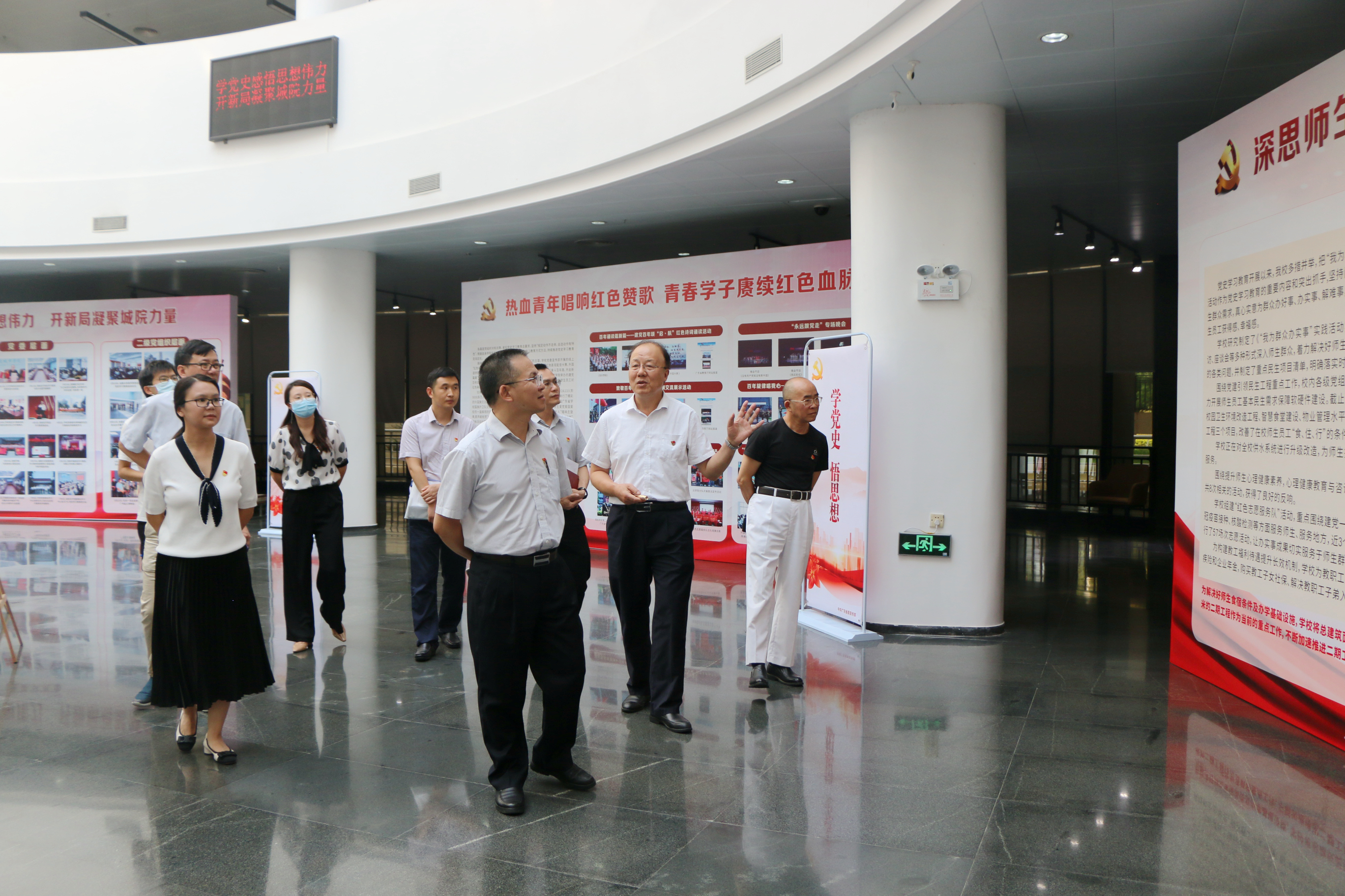 邓柏松组长一行还查阅了Beat365党史学习教育工作有关资料,前往图书馆二楼中厅参观了 “学党史感悟思想伟力 开新局凝聚城院力量”党史学习教育主题展及3B一楼大厅计算机与信息学院党史学习教育文化回廊,并对Beat365党史学习教育工作各项亮点给予了充分肯定。