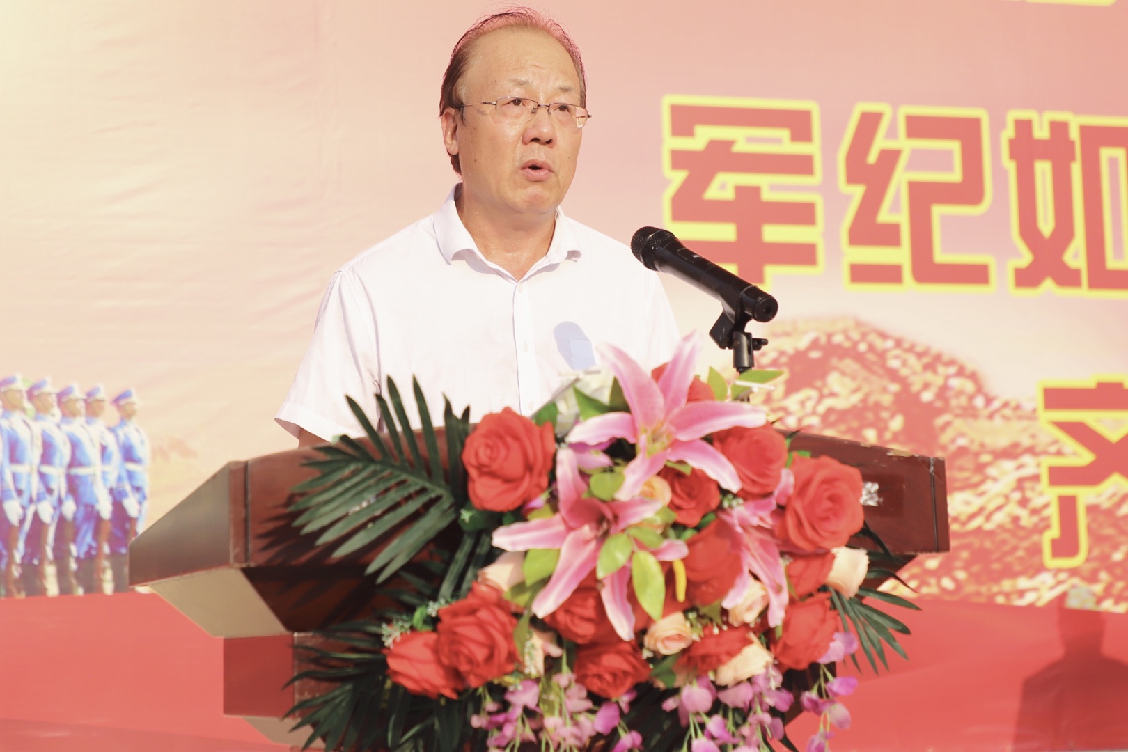 党委书记章德胜、武装部副部长刘维仝、教导老师凌继峰为入伍新兵佩戴大红花。
