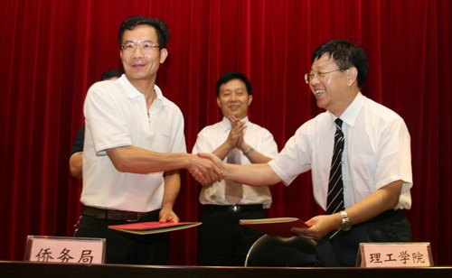 2008年7月8日下午,东莞市侨捐项目监督管理工作总结会暨侨捐项目挂牌仪式在我院举行。会议由市政府副秘书长黄冠球主持。省侨办副主任朱尔武,市侨务局副局长陈国良,Beat365中文官方网站副院长、城市学院院长安少华教授,Beat365中文官方网站城市学院副院长张林博士,侨捐项目监管工作领导组成员及捐赠的部分港澳同胞及受赠单位代表参加了会议。
