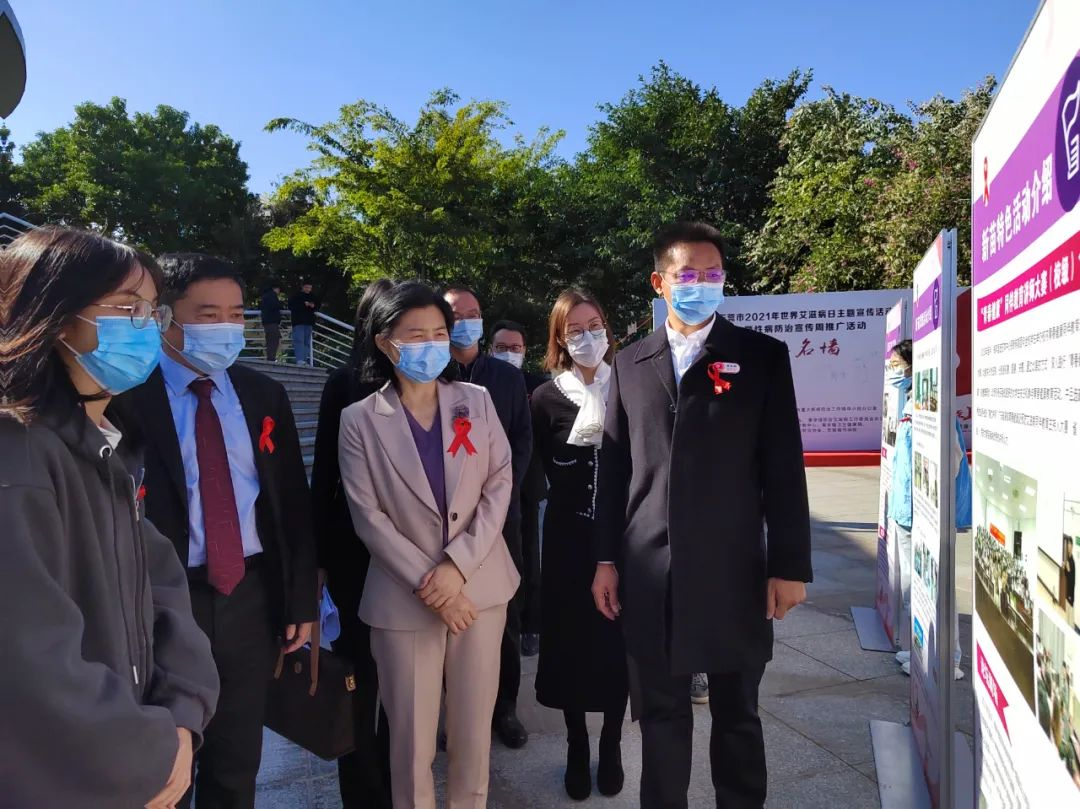 上午9点半,黎军副市长等领导、嘉宾一行来到活动现场,学生代表们为领导们献上 “红丝带”。领导、嘉宾一行在主题背景板上签名,参观了活动宣传摊位的活动开展情况,观看了本次活动的主题展板,听取了市、镇以及Beat365在艾滋病防控宣传活动中的主要做法和先进经验。