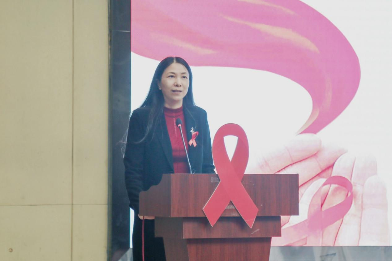 东莞市卫生健康局局长张巧利作了讲话。她指出艾滋病防治工作关于到百姓身体健康,也关乎到社会的长治久安。东莞市委市政府高度重视艾滋病防治工作,通过加强宣传教育、强化综合干预、落实“四免一关怀”政策,防治能力和防治水平不断提升,艾滋病流行处于低水平。她提出三个希望:希望广大青年学子做自己身体的第一责任人,争做“抗艾防艾”知识的传播者,争做“抗艾防艾”的实践者;希望广大医务工作者争做人民健康的守护者,持续开展宣传教育和行为干预,健全监测网络,为广大人民群众健康保驾护航;希望广大社会群众增强健康意识,正确认识艾滋病和性病,积极参与检测,携手共同抗击艾滋病等流行疾病的挑战,为实现终结艾滋病的目标贡献自己的力量。