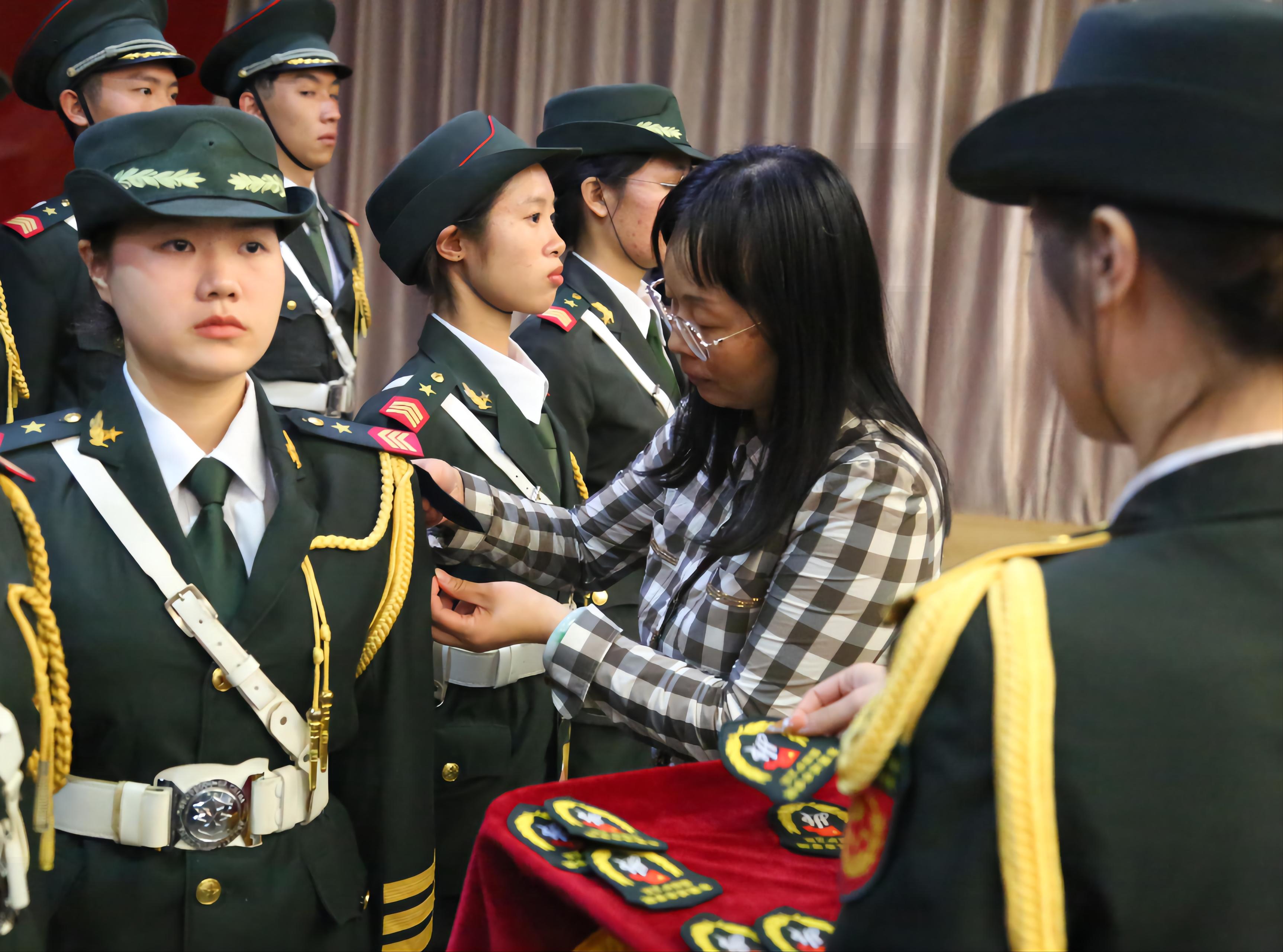 党委书记章德胜作了讲话。他指出国旗护卫队自成立以来,始终以护卫国旗为使命,以弘扬爱国主义精神为己任,以爱国、爱校、团结进取、积极向上的精神风貌为目标,展现当代大学生在校的一面校园文化旗帜。连续两年参加广东省学校国防教育成果交流展示及国旗护卫队比赛都获得“一等奖”好成绩。他对国旗护卫队提出三点希望:一是要“爱国旗,坚信念”。新一届的队员,应该珍惜每一次训练的机会,珍惜每一次升国旗的机会。永葆对国旗崇高的敬意;二是要“立大志,做大事”。作为中国新时代青年,除了完成护卫国旗的任务之外,更需立下远大志向,有抱负有担当;三是要“续传承,勇开拓”; 新队员不仅要传承国护精神,更要身体力行地弘扬红色文化。带动全体学生一起学,从学习中感悟共产党人的初心,从学习中汲取茁壮成长的精神力量。他希望各位队员能怀揣最初的热情,秉承国旗护卫队的队训“传承 责任 奉献 团结 ”,叫响国旗队的口号“一日护卫国旗,终身无上荣光”,在这大好青春中不断进取,绽放出自己最耀眼的青春光彩!