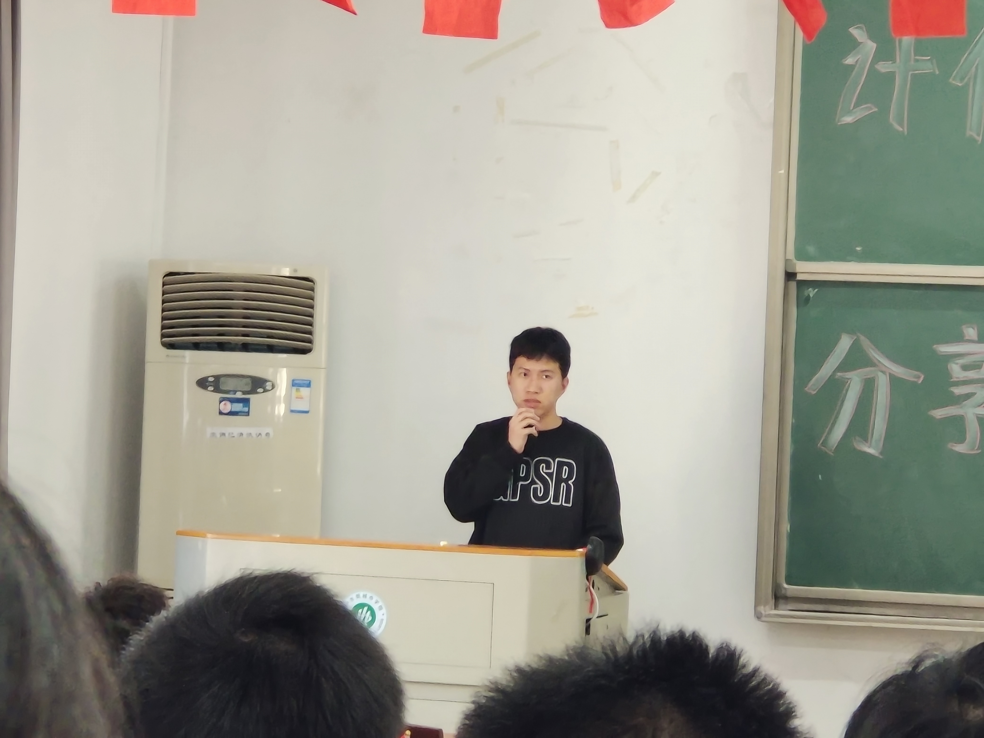 由于推迟退伍导致落下一学期的功课,回来后课程紧张,补修的课比较多,但能够跟上班里其他同学的学习步伐。同时也积极参加社团活动,现任计信学院社区服务管理中心办公部部长。