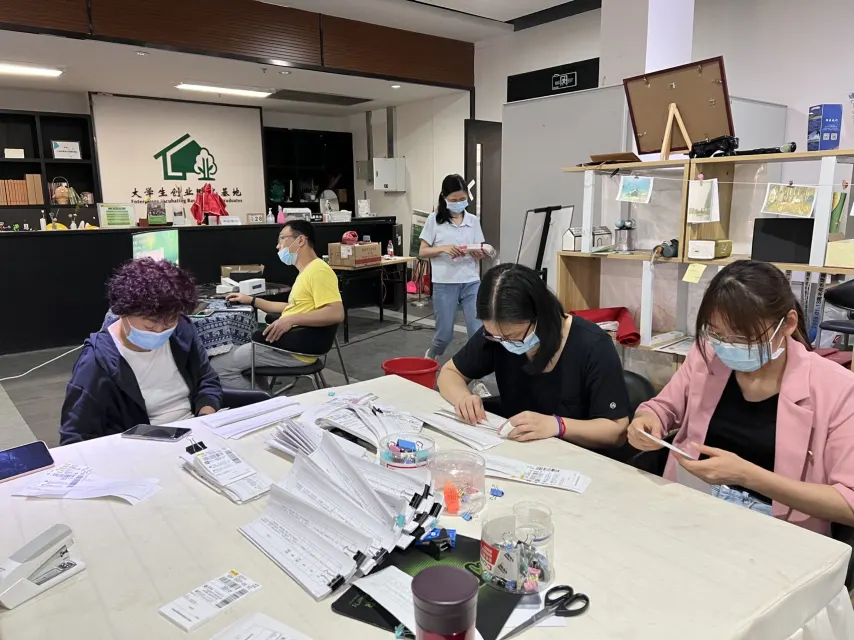 图书信息中心主任陈显龙介绍说:“技术组主要负责通过线上收集同学们的快递地址,负责订单信息和快递信息匹配,快递包裹信息的打印和核对工作。选配组主要负责按订单按封控区域选配图书。打包组、投递组则负责打包和投递教材。沟通协调组则负责与学生沟通,跟进快递的到货情况。”