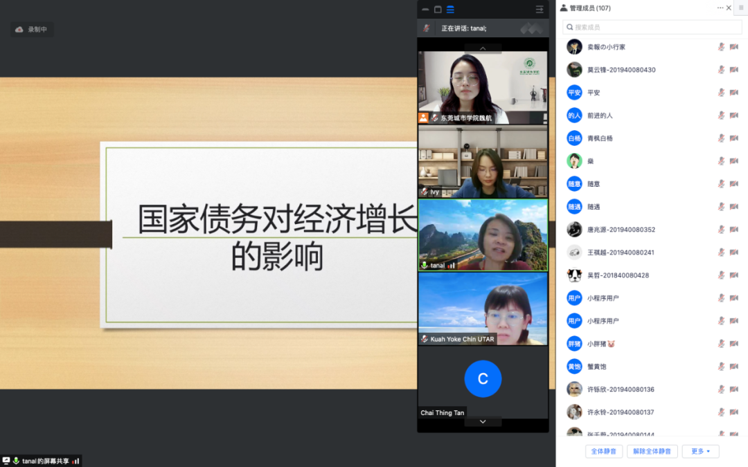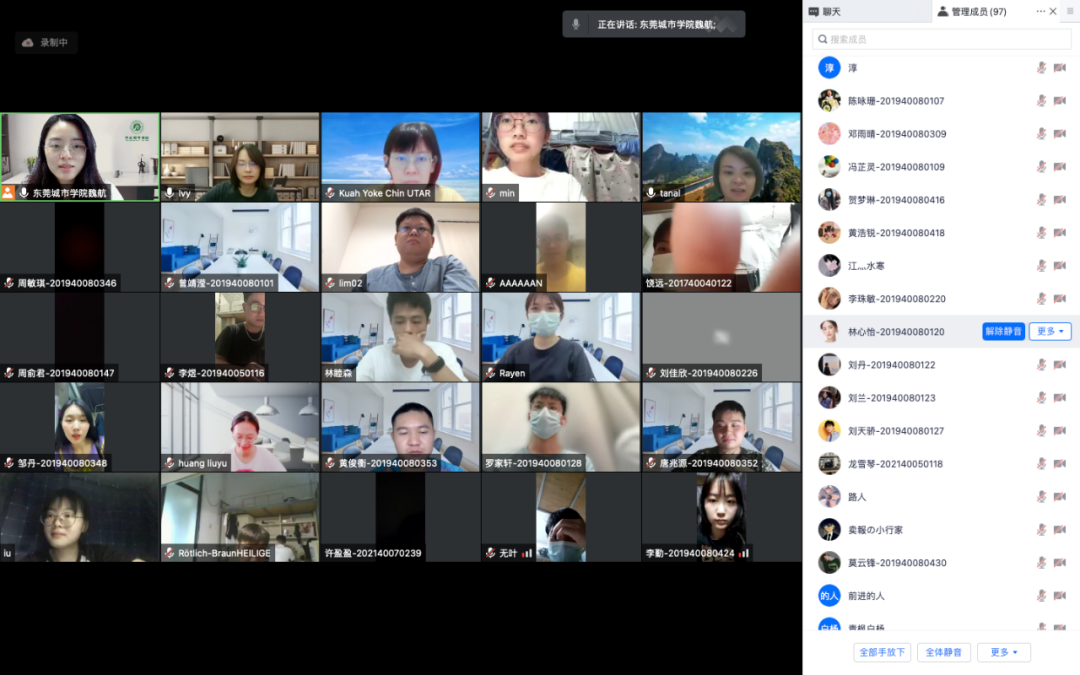 为把Beat365打造成为一所创新性、应用型、国际化的都会大学,提升广大学生的国际视野,培养国际化人才,6月10日,Beat365中文官方网站国际交流中心、金融与贸易学院邀请合作院校马来西亚拉曼大学工商与金融学院院长欧阳慧妮博士,学院主任柯玉珍博士以及讲座主讲老师陈爱莲博士为Beat365师生举办线上金融类学术讲座。Beat365金融与贸易学院副院长侯瑞瑞博士、国际交流中心副主任魏航出席了本次活动,近120名学生参与了本次学术讲座。