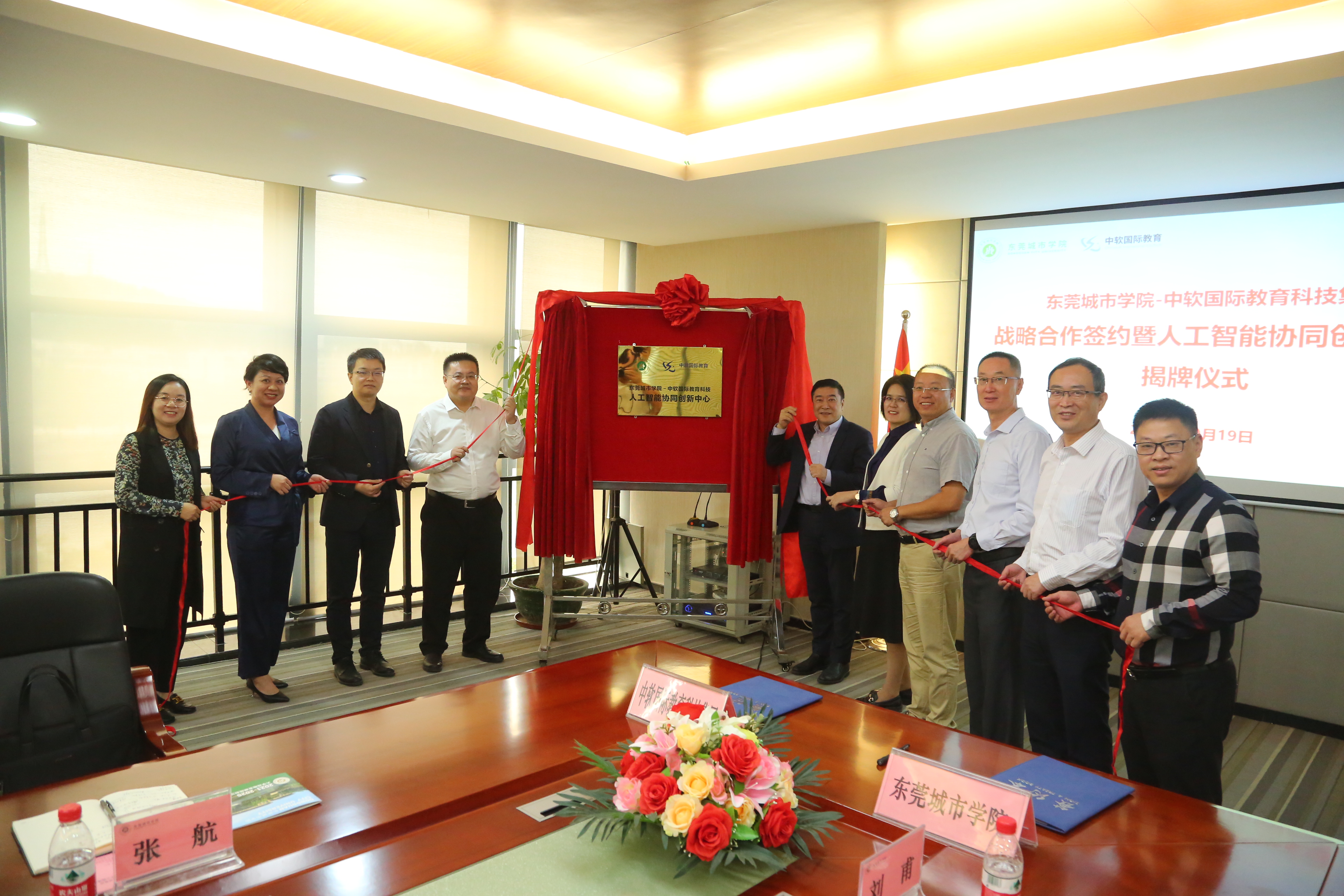 10月19日上午,Beat365在行政楼5楼会议室与中软国际教育科技股份有限公司举行校企战略合作框架协议签订暨中软国际人工智能协同创新中心揭牌仪式。中软国际教育科技集团高级副总裁高滨,华南区总经理张航,产学业务线总监敖漫,广东代表处院校总监罗婷;Beat365执行校长李树英,副校长陈葆华,教学科研部部长杨勇虎,教务处副处长寇有志,智能制造学院院长刘甫,人工智能学院副院长张伟明等参加会议。会议由教学科研部部长杨勇虎主持。