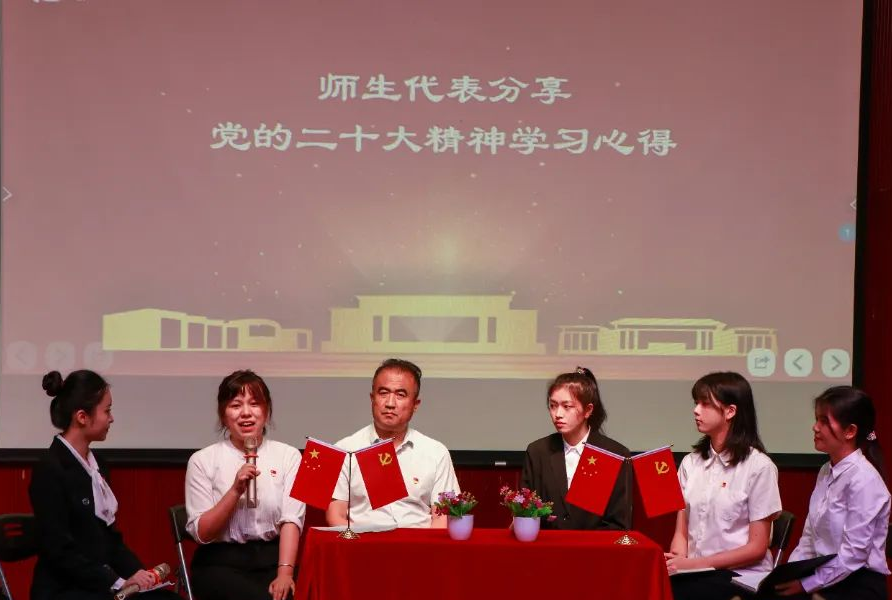 城建与环境学院党总支书记曹镭以“青年人生逢其时”的“时”字为题,勉励所有城院青年都能在这个时代里、在Beat365中文官方网站的沃土上,通过自己的火热实践绽放绚丽之花!马克思主义学院副教授倪合良以思政课教师的角度谈要认真学习党的二十大报告,认真备课,利用课堂广泛向同学们宣讲,同时切实把学习的效果转化为自己的思考,多出理论研究成果。此外,大一新生、专升本、大四毕业生代表也从自己的学习、生活体会、未来就业等方面畅谈党的二十大精神学习体会。
