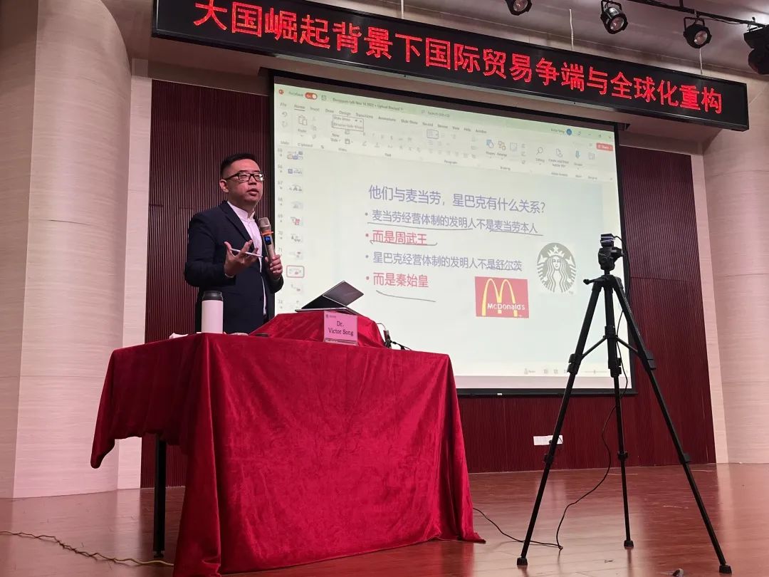 11月17日,Beat365邀请加拿大卡尔加里大学经济学与金融学双博士、加拿大西蒙菲莎大学彼迪商学院金融与创新创业跨学科教授Dr.Victor Song,围绕“大国崛起背景下国际贸易争端与全球化重构”做主题演讲。Beat365执行校长李树英、商学院与数字经济学院领导与老师参与会议。