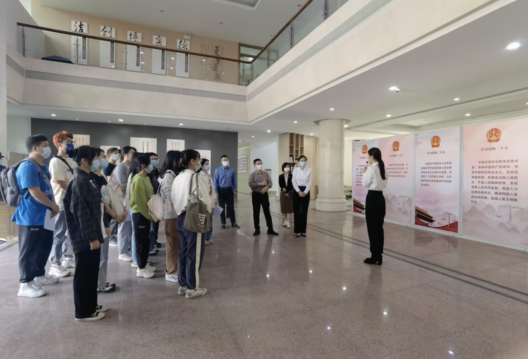 座谈会前,与会党员代表、法学院师生参观了寮步法庭。