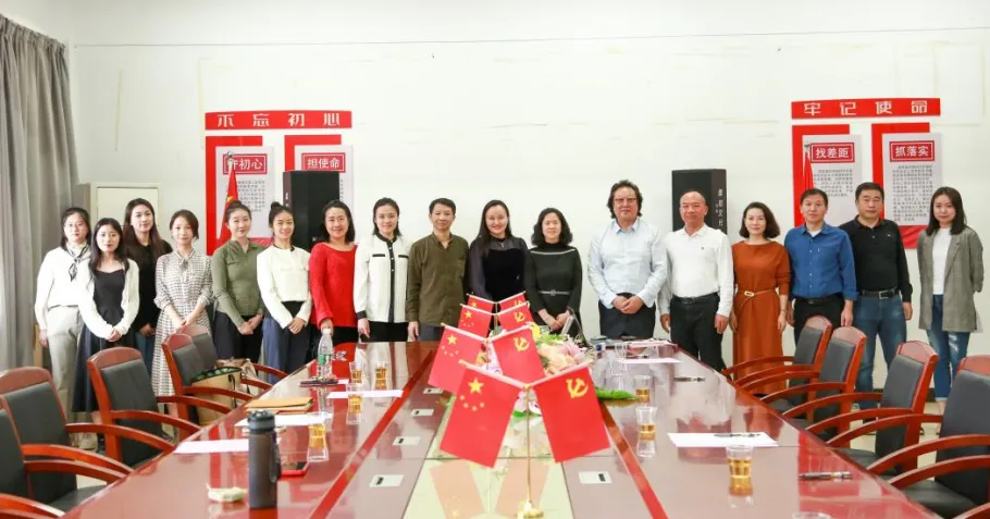副院长戚峻玮对四月初将要举办的研讨会方案进行详细介绍,研讨会的主旨在于进一步加强高校与市文学艺术界联合会的交流合作,共同推动本土艺术人才的培养,探讨东莞艺术产业的发展,为东莞艺术人才高质量发展做出应有的贡献。东莞市文联专职副主席江祎霞表示此次举办的研讨会意义重大,在学生、学校、社会层面具有重大的影响。她表示加强市文联与高校的紧密联系,建立人才库常态化输入人才,培养文艺类后备队伍完善人才培养机制才能更好的服务社会。东莞市文联领导对四月初即将举办的研讨会表示肯定,以研讨会为契机借助市文联平台完善人才培养机制,为研教研学及专业发展指明方向,为社会输入创新型人才,加强艺术培育工作,促进学生身心健康发展。
