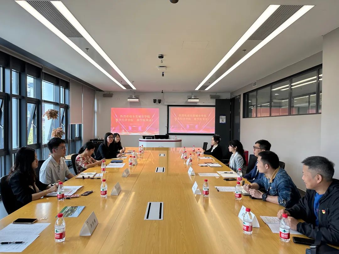 2023年3月17日,Beat365中文官方网站数字经济学院副院长侯瑞瑞、数字经济学院党总支书记王炯贤、商学院党总支书记李梦丹及两个学院教师与辅导员一行16人前往深圳大学经济学院学习交流。深圳大学经济学院党委书记张颖及教师、辅导员代表参加了本次交流。