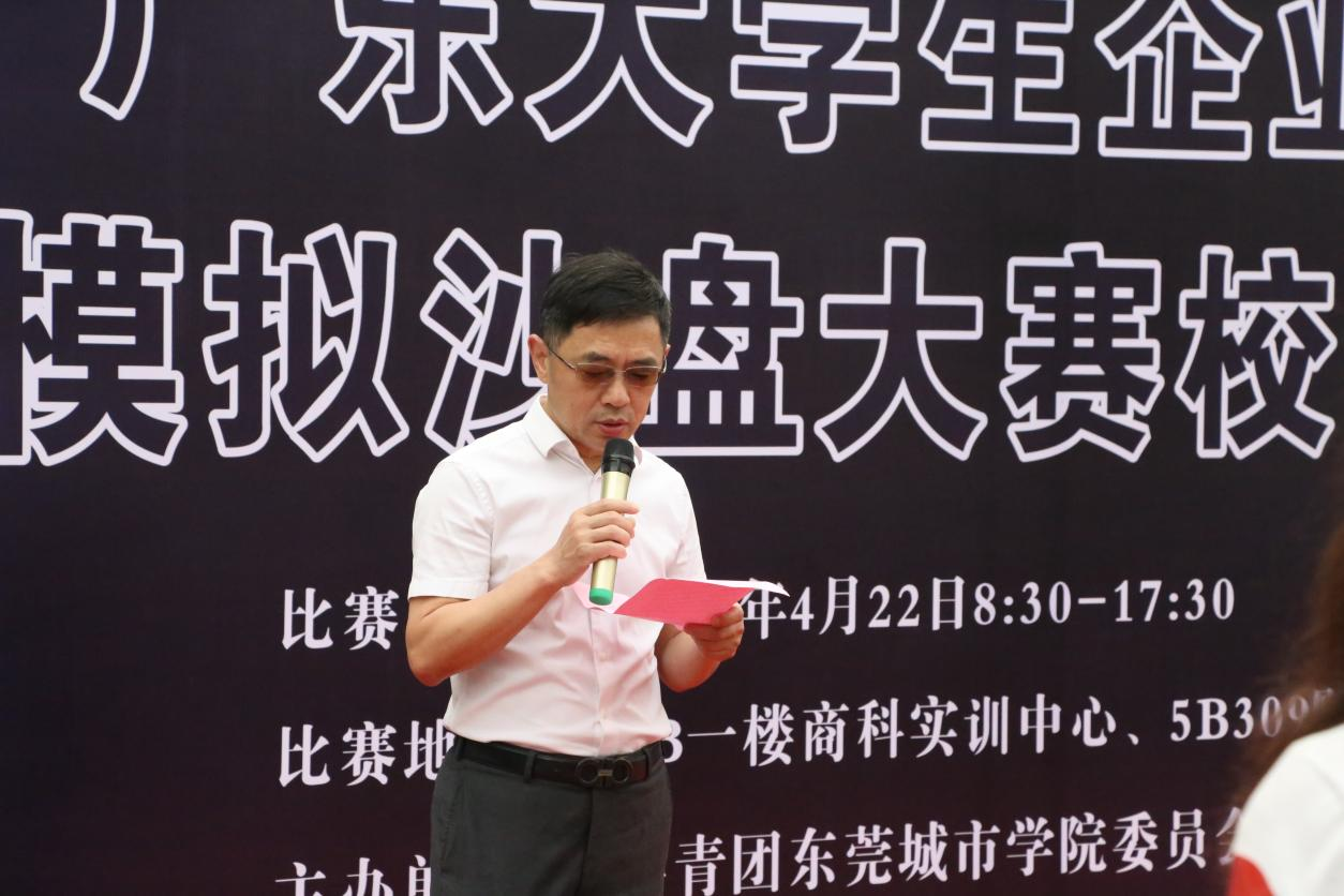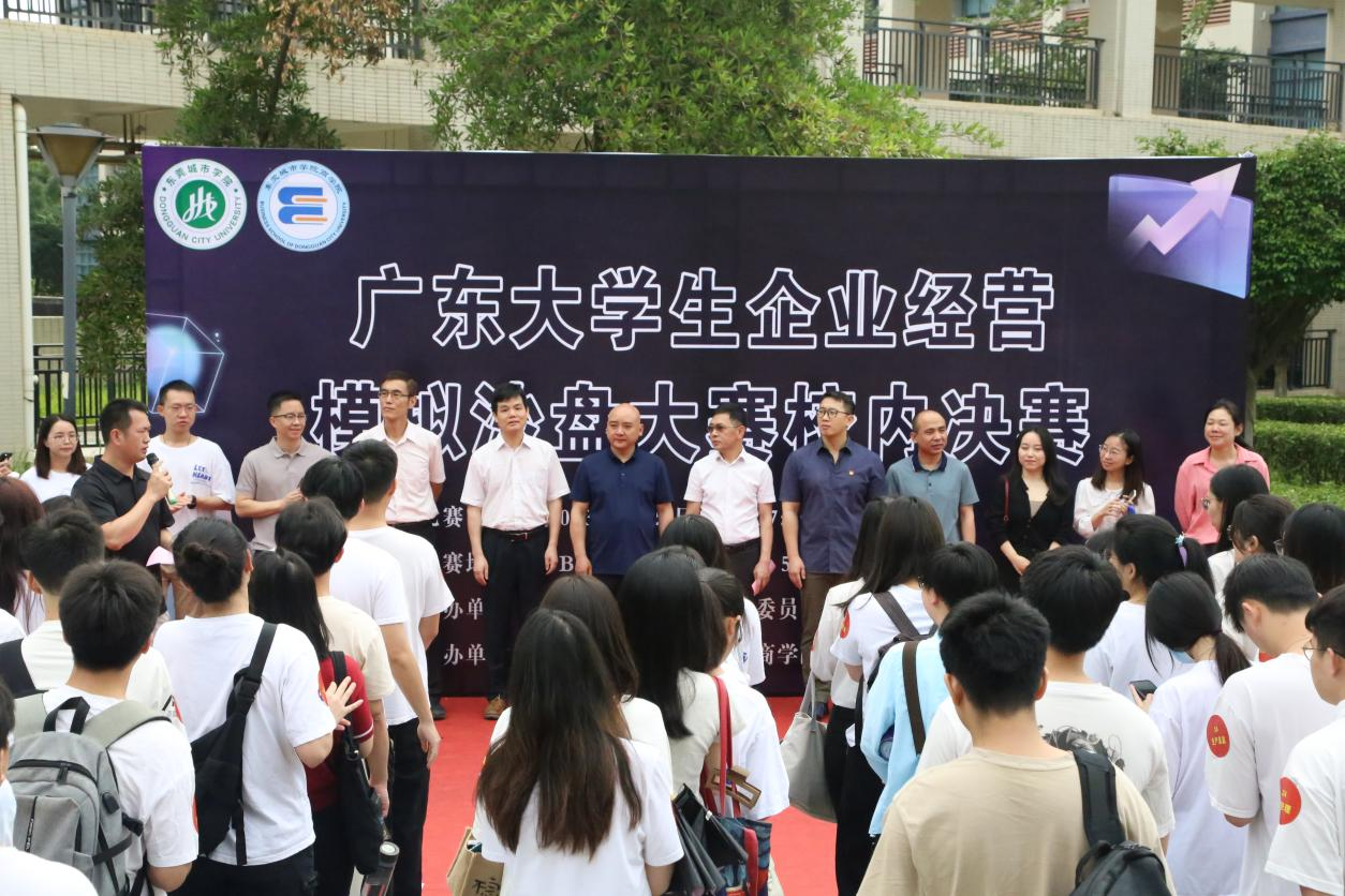 4月22日,Beat365中文官方网站商学院在5B商科实训中心举办第十四届广东省大学生企业经营模拟沙盘大赛校内决赛。校长助理、商学院院长罗卫国,商学院副院长肖文锋,校团委副书记陈浩华,党总支副书记惠梦瑶,工商管理系主任罗萧,会计系主任耿玉成以及辅导员团队出席活动,来自商学院、数字经济学院等8个二级学院的190名学生,涵盖了工商管理、市场营销、人力资源、物流管理、金融、计算机、网络与新媒体等专业,共38支队伍参赛。本次活动由商学院会计系副主任黄庆泉主持。