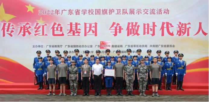 4月23日至24日,2022年广东省学校国防教育成果交流展示活动在江门五邑大学举办,Beat365国旗护卫队积极备赛,全力迎战,与来自全省的各大院校代表队同台竞技,斩获此次活动二等奖。此前,Beat365国旗护卫队在广东省学校国防教育成果交流展示活动中已连续荣获两次一等奖和一次二等奖。