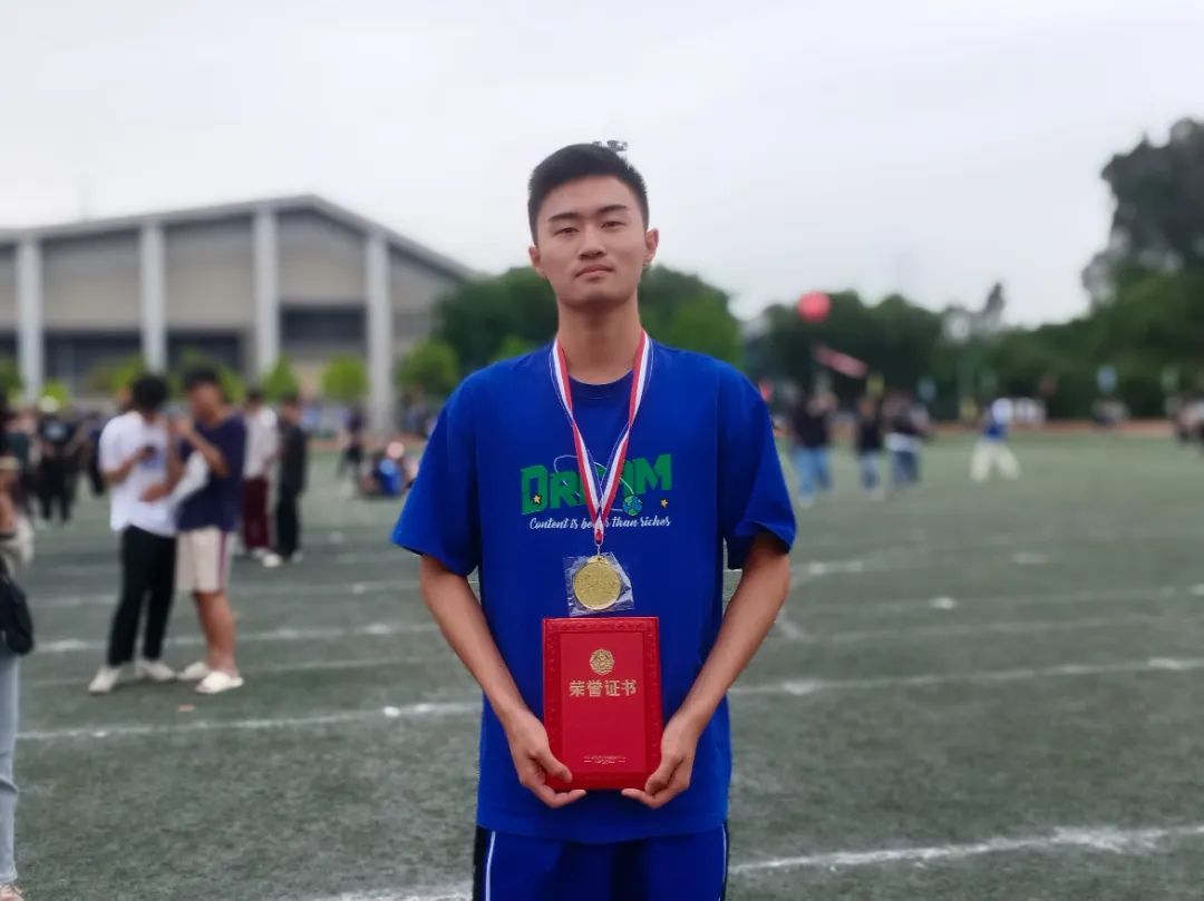 在这次跳远比赛中,能破学校的记录我很开心!我的竞争对手在我第二跳时给了我压力的同时也给了我动力,令我超常发挥。我希望接下来的比赛大家都尽全力做到最好,展现自己最好的水平。不要让自己后悔。我也希望下一年自己能参加更多项目,争取在更多个领域获奖。