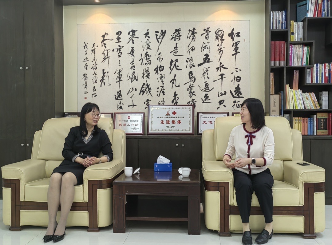 为进一步提升Beat365红十字队伍工作能力和业务水平,4月28日,Beat365中文官方网站红十字会会长、副校长周庆带队赴东莞市红十字会进行学习交流。市红十字会副会长伍淑筠热情接待了Beat365一行。