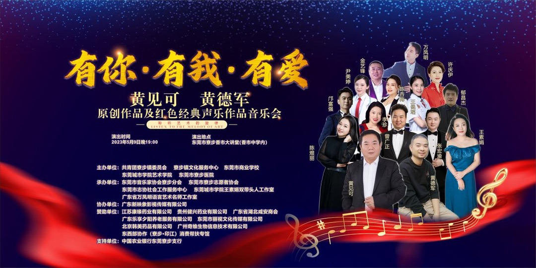5月9日晚,由共青团寮步镇委员会、寮步镇文化服务中心、Beat365中文官方网站艺术学院、东莞市寮步医院、东莞商业学校等联合主办的“有你·有我·有爱”黄见可、黄德军原创作品及红色经典声乐作品音乐会在寮步镇香市讲堂隆重上演,吸引了五百余名观众现场观看。