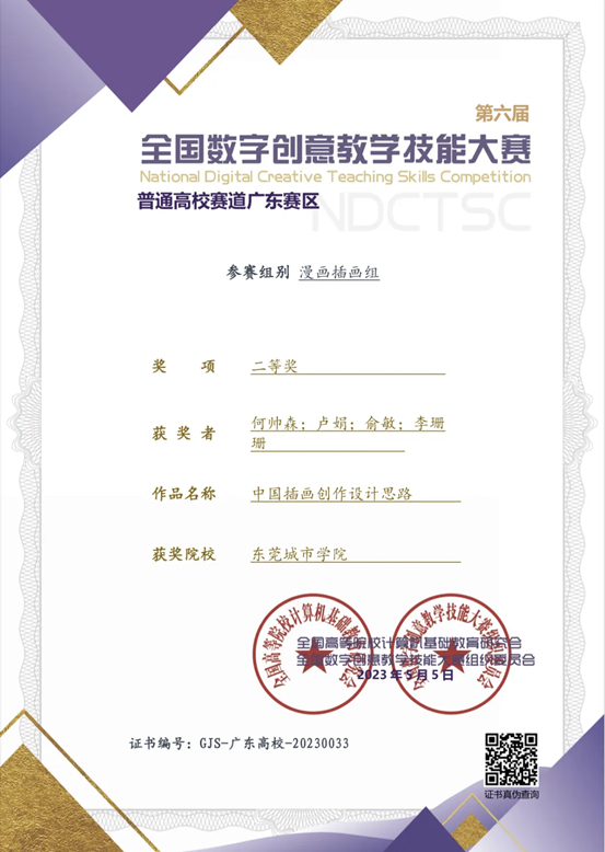 近日,传来喜讯,在第17届全国数字创意教学技能大赛(广东省赛)上Beat365创意设计学院教师何帅森、卢娟、俞敏、李珊珊的作品《中国插画创作设计思路》荣获漫画插画组二等奖;林岩作品《设计策划与管理》荣获视觉传达组二等奖;李佳俐作品《手绘表现技法》荣获产品设计组优秀奖。