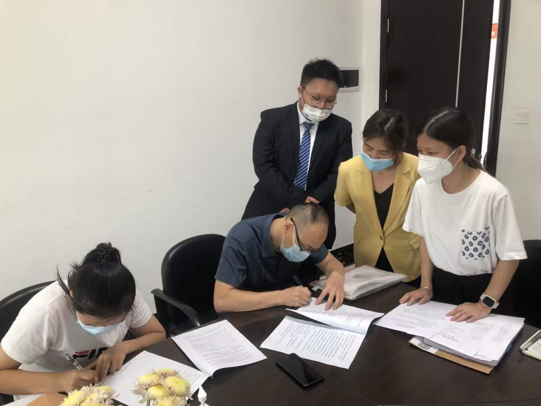 经过前期对案件梳理和与当事人的深度沟通,特邀调解员刘红已在心中确定了基本的解决方案。进入现场调解后,调解员刘红提出案件的争议焦点——承揽加工货款的对账以及其中两批货物的质量问题,要求双方对此进行充分的质证。在将近一个半小时的质证和商讨过程中,当事人一度“剑拔弩张”“互相推责”。在争执不下之际,调解员与调解员助理薛文泽同学分头抚慰双方的情绪,并对其进行劝导、说理和释法;在公平公正地界定了双方的责任义务后,敲定了最终的调解方案,使得双方以一个合理合法的货款给付方式以及价格达成和解。随后,在等待法官审核调解协议的过程中,双方当事人握手言和,又开始洽谈起生意了。