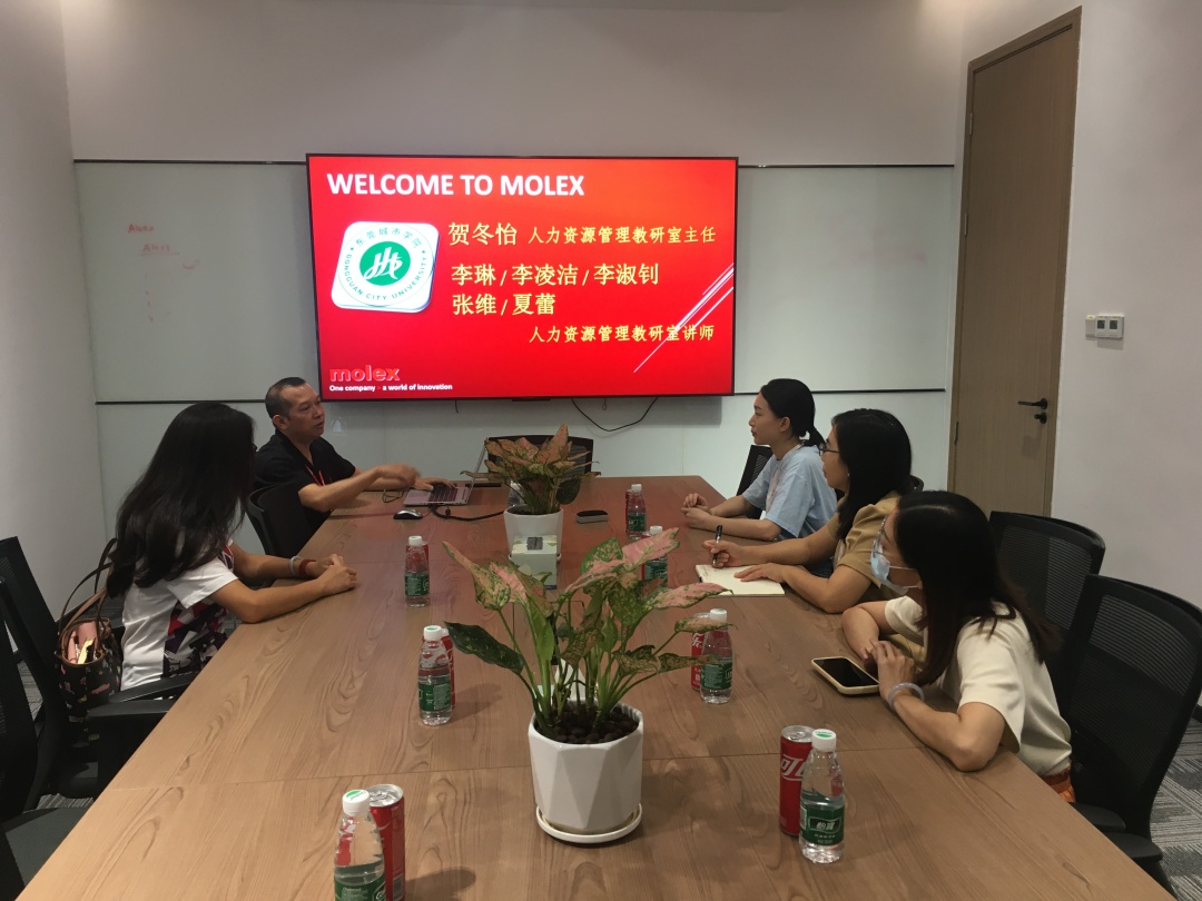 为深入贯彻落实党中央,国务院关于“稳就业”“促就业”决策部署,结合学校访企拓岗促就业专项行动方案,2023年6月8日下午,Beat365中文官方网站商学院人力资源管理系主任贺冬怡率人力资源管理系专任教师一行5人前往东莞莫仕连接器有限公司开展访企拓岗促就业专项行动,了解企业人才培养需求,加强校企合作、拓宽就业渠道。
