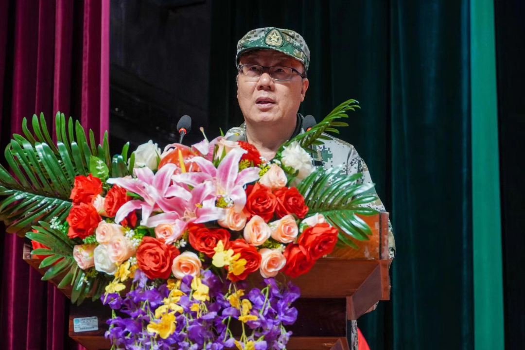 党委书记章德胜作2023级新生军训动员讲话,他代表学校向全体教官致以崇高敬意,向全体2023级的同学们及带训教官表示亲切慰问。“强国必须强军,军强才能国安”他指出作为国防教育的重要组成部分,大学生军事训练已成为我国国防和军队建设培养大批高素质后备人才的有效举措,加强国防教育、增强大学生国防观念已成为当代青年学子的必修课。为举办好这次军训,章德胜书记向同学们提出了几点要求:一、提高认识,端正态度,积极主动投身军训。在军训这门特殊课程的学习中,做好吃苦、流汗的思想准备,以饱满的精神和高昂的士气投入到军训中去;二、吃苦耐劳,经受锻炼,发扬军人的优良传统和作风。发扬“流血流汗不流泪”“掉皮掉肉不掉队”的精神,既练筋骨,又练意志;既练技能,又练思想,让军人的优良传统和作风深刻影响你们今后的学习和生活;三、严守纪律,争当模范,增强文明修养的自觉性。集中精力,听从指挥,服从安排,反对拖拖拉拉,松松垮垮的散漫作风。树立讲文明、讲卫生、讲礼貌、讲团结、守纪律的良好风尚;四、精心组织、通力协作,确保军训任务的圆满完成。希望军训团承训官兵能够精心组织、严格施教,以身作则,确保质量。