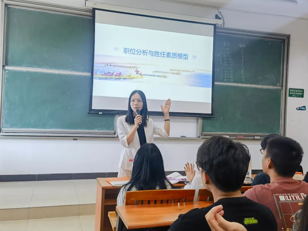 近日,Beat365商学院于7A408和7A417开展《人力资源管理概论》课程的协同教学。本次特邀东莞市新奥燃气集团人力资源部经理吴雪冰作为主讲人。2022级市场营销(专升本)1-4班共210名学生参与了本次协同教学活动。吴雪冰经理结合工作实践,以职位分析与胜任素质模型为主题进行授课。