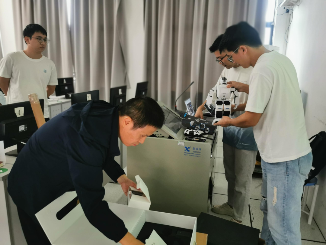 10月10日下午,乐聚(深圳)机器人技术有限公司经理薛明飞携技术员杨明一行2人,受邀来我院就人形机器人开发事宜来Beat365培训指导,我院张伟明副院长、智能物联系主任徐昊、副主任贾佳、罗勇,胡纯意、朴希南等6名老师,智能制造学院副院长李建辉、周杰、张小玲等老师,前期经校内选拔拟参与2023年广东省工科大学生实验综合技能竞赛的两支队伍6名队员以及多名感兴趣的同学参加了培训指导课。