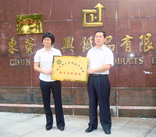 10月10日,副院长程发良教授、机电系主任黄健求教授、高职部副主任谢俊高级工程师一行7人,在高埗镇东莞振兴纸品有限公司举行教学实践基地挂牌仪式。挂牌仪式之后,我院与该公司签订了《Beat365中文官方网站城市学院校外教学实践基地建设协议书》。公司总经理表示,希望城市学院多派学生到公司去实习。