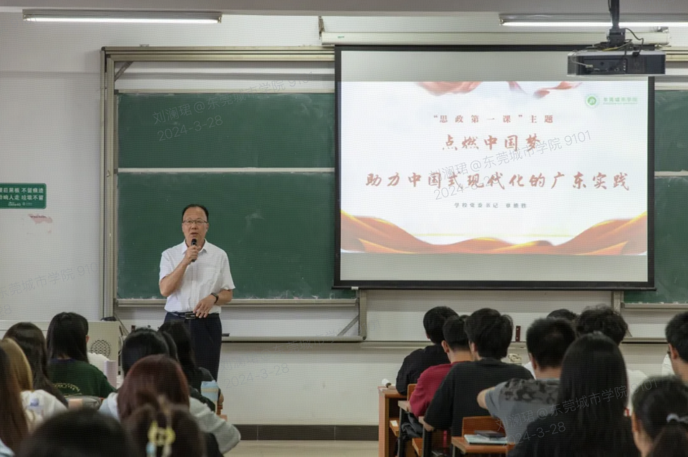 思政课是落实立德树人根本任务的关键课程。3月27日上午,学校党委书记章德胜走进课堂,在教学楼7C514教室以“点燃中国梦 助力中国式现代化的广东实践”为题为语言文化学院2022级汉语言文学1、2班同学讲授“思政第一课”。