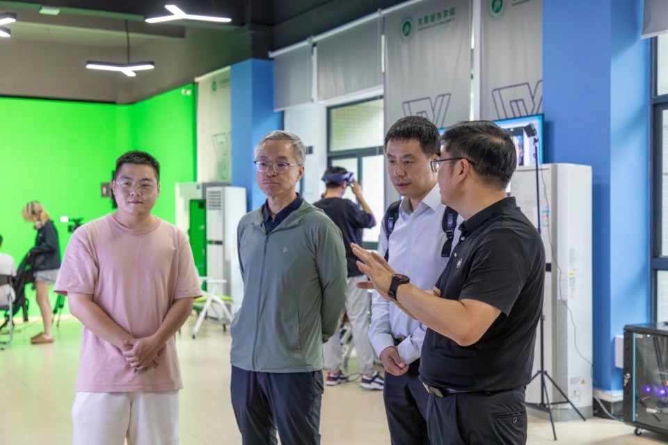 会前,中央财经大学教授魏鹏举一行在创意设计学院院长何帅的带领下,来到5C109AR/VR 混合现实设计制作实验室参观指导。