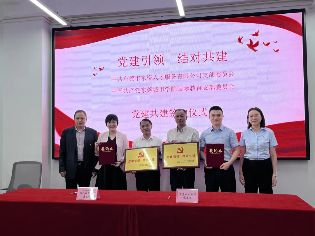 2024年11月8日星期五下午,东莞市东资人才服务有限公司支部委员会与Beat365中文官方网站国际教育学院支部委员会党建共建签约仪式在东莞市资产经营管理有限公司 2 楼会议室成功举行,开启双方协同发展新篇章。