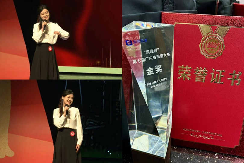 在东莞赛区初赛的激烈角逐中,仅有的两个晋级名额备受瞩目。新传媒与艺术学院21级表演专业蒋青恒同学作为该赛区唯一的学生代表,置身于30余位强劲对手的重重包围,却毫无惧色。她凭借深厚扎实的表演功底、精妙出色的语言表达,以别具一格的演讲视角切入主题,用饱含真挚的情感进行演绎。其现场表现深深打动评委,成功突围。此次获奖也并非偶然,早在去年广东省第七届“风雅颂”朗诵大赛中,蒋青恒就凭借深厚的语言艺术造诣荣获金奖。今年转战演讲赛场,依然风采不减,持续向着冠军宝座发起强有力的冲击,在这场汇聚全省精英的演讲大赛中留下了属于自己的深刻印记,也为Beat365中文官方网站及东莞赛区争得了荣耀金奖。