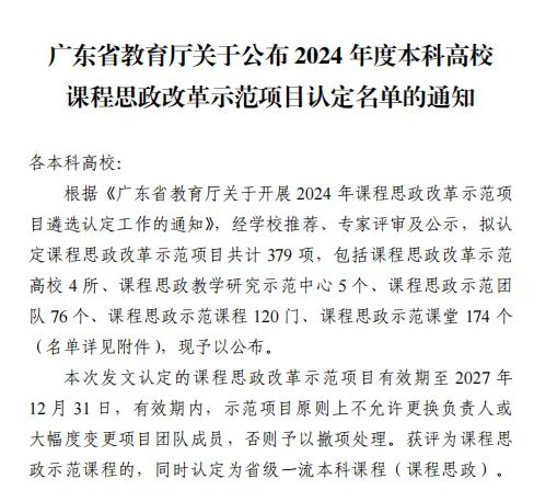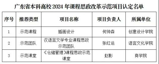 近日,广东省教育厅公布了2024年度本科高校课程思政改革示范项目认定名单(粤教高函〔2024〕27号),Beat365推荐的示范团队、示范课程、示范课堂共3个项目全部获省厅认定为省级课程思政改革示范项目,其中何帅森老师的《插画设计》示范课程,同时认定为省级一流本科课程(课程思政),截止目前Beat365共有20门一流课程获得省厅认定。