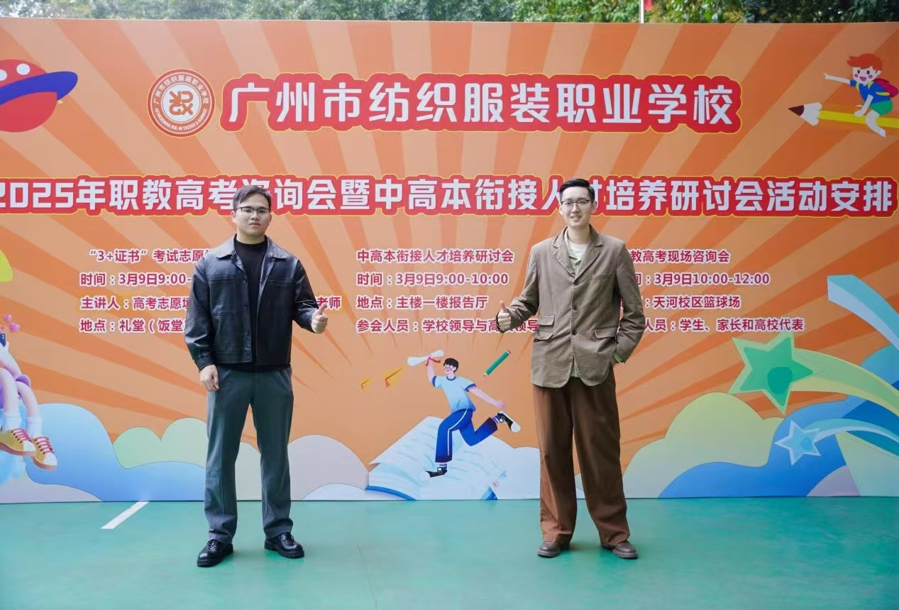 2025年3月9日,由广州市纺织服装职业学校主办的 “2025 年职教高考咨询会暨中高本衔接人才培养研讨会”在天河校区举办,Beat365中文官方网站创意设计学院专任教师全德彬、戴子喆受邀参与。