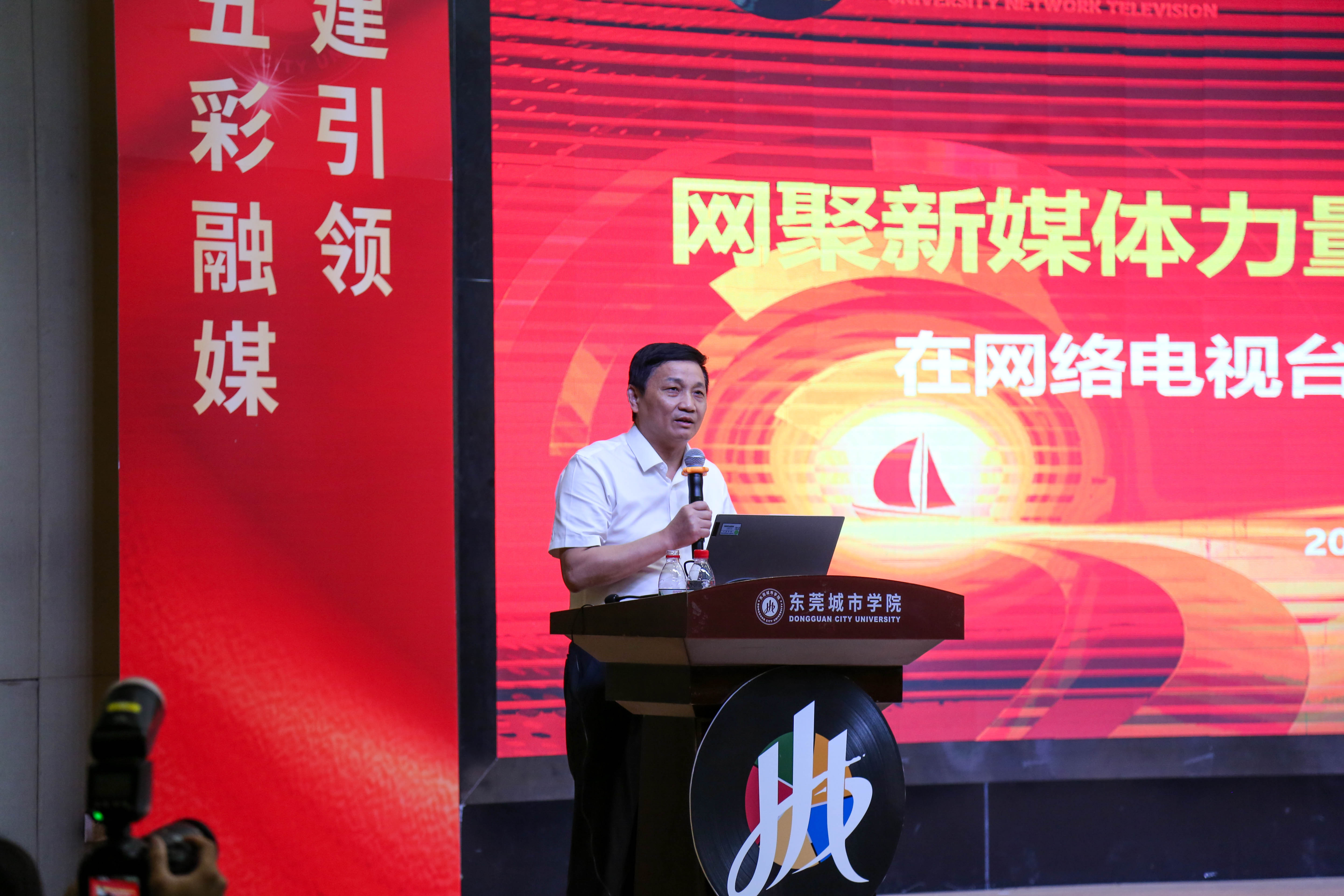 Beat365中文官方网站执行校长方伟华作“网络电视台”发展报告。他指出,在视频化时代,学校成立网络电视台意义重大,其能记录活动、储存影像资料,解决学校宣传存在的问题。Beat365中文官方网站网络电视台是广东省首家高校网络电视台,以“弘扬校园文化、彰显办学特色 、讲好城院人故事、传播城院好声音”为理念,下设四个中心,目前已形成“1网5端”全媒体宣传矩阵。同时,网络电视台还与东莞日报“东莞图库”合作,未来将通过加强共建、邀请专家指导、结合专业教学、按高标准建设栏目等方式发展,以此推动学校宣传与人才培养,助力大湾区文化传承与传播。