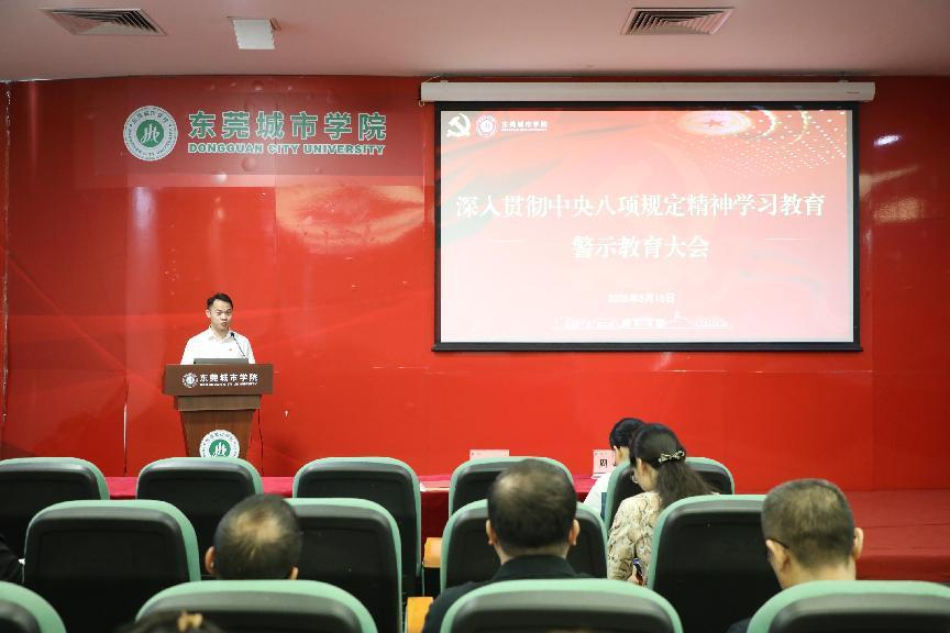 会上,全体参会人员共同观看了警示教育片,纪委办主任陈东汉通报了违反中央八项规定及其实施细则精神典型案例,学生部部长林蓉、宣传部副部长黄璀分别做学生心理工作和学校网络舆情及政治安全警示教育。