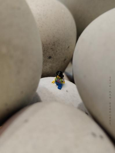 作品介绍:庞大的蛋群跟迷你的小人形成了鲜明的对比,让人联想到多方世界中如尘埃般渺小的自己。在生活。人生的旅途中没有一帆风顺,走出一道道坎坷,越过一道道险阻,便可柳暗花明。