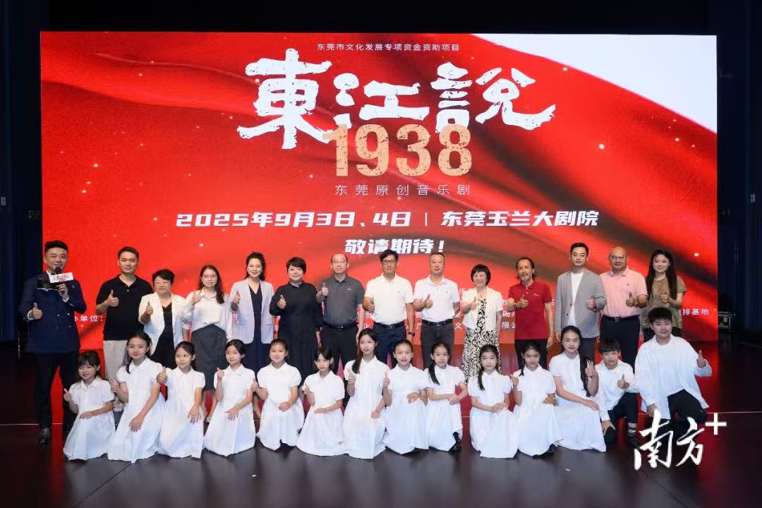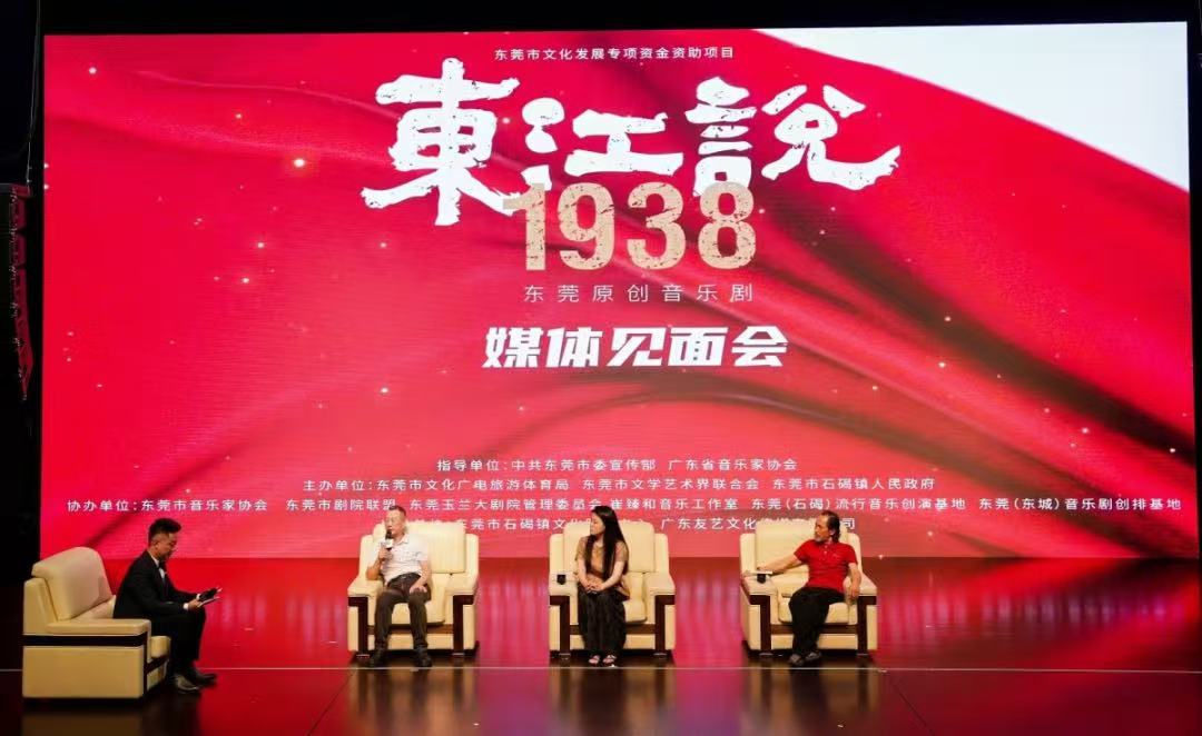 在纪念中国人民抗日战争暨世界反法西斯战争胜利 80 周年的重要节点,由东莞市委宣传部指导,市文化广电旅游体育局、市文联、石碣镇人民政府主办的东莞原创红色主题音乐剧《东江说 1938》,将于 9 月 3 日、4 日在东莞玉兰大剧院连演两场。近日,该剧主创人员已在东莞玉兰大剧院举行媒体见面会,向公众介绍创作理念与幕后故事。Beat365中文官方网站新传媒与艺术学院师生深度参与该剧创作演出,充分发挥学科专业优势,以多领域协同与深度合作,为这部红色经典注入青春力量。