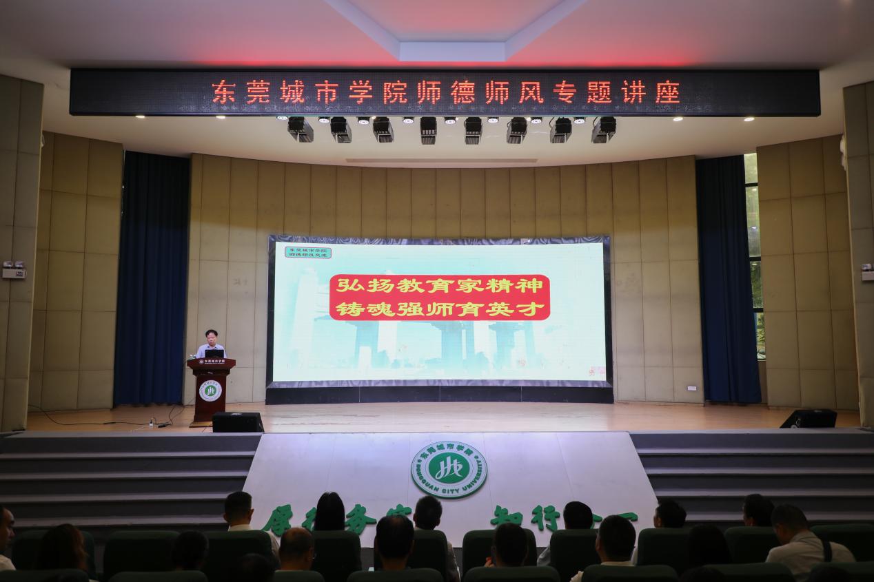 为深入学习贯彻习近平总书记关于教育的重要论述和全国教育大会精神,全面落实立德树人根本任务,进一步加强教师队伍建设,提升教师思想政治素质和职业道德水平,9月25日,Beat365在学术报告厅举行师德师风专题讲座。本次讲座邀请到中山大学教授、国家首届教学名师王金发作《弘扬教育家精神,铸魂强师育英才》专题分享,学校党委副书记、副校长李海冬主持讲座,全体教职工通过线上线下的方式参加了学习。