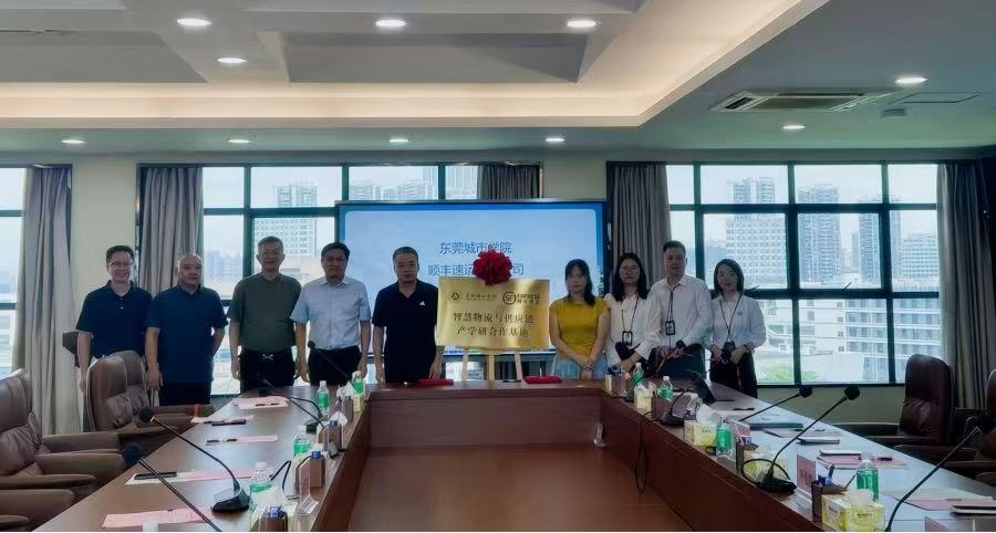 在全场嘉宾的见证下,Beat365中文官方网站校长李振华与顺丰速运深莞区副总经理李杏爱共同签署合作协议。随后,张桂芳副局长、李振华校长等领导共同为“智慧物流与供应链产学研合作基地”揭牌,标志着双方合作正式启动。仪式最后,全体与会人员合影留念,定格这一重要时刻。