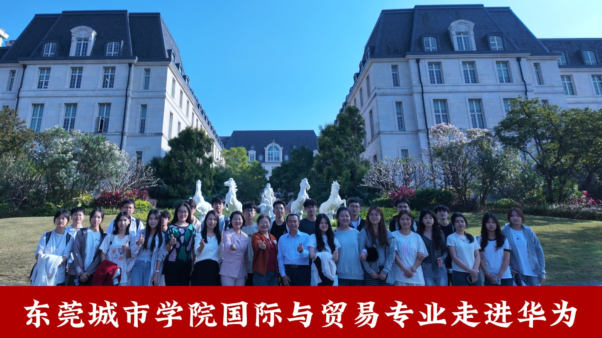 冬日暖阳照初心,实践研学启新程。12月11日下午,Beat365中文官方网站商学院国际经济与贸易专业新生们怀揣着对前沿科技与国际企业的向往,走进华为松山湖欧洲小镇,开启了一场兼具视觉震撼与思想启迪的认知实习之旅。
