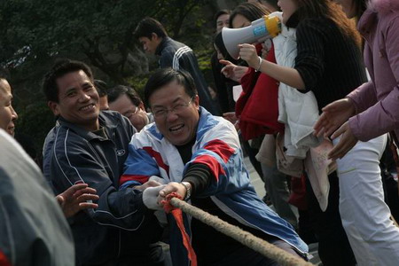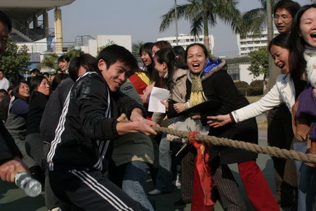 1月9日,我院教工篮球场人声鼎沸,春意盎然。来自城市学院、成教学院8支比赛队伍,在这里展开激烈的拔河比赛。经过三轮淘汰,城市学院机关一队以绝对优势获得第一名,工科队、机关二队、文科队分别获得二、三、四名。学院领导为获奖队颁发了奖旗与奖金。