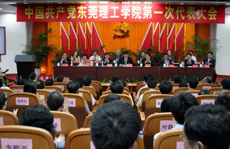 大会号召,全院各级党组织、广大共产党员和师生员工要在学院党委的领导下,更加紧密地团结在以胡锦涛同志为总书记地党中央周围,以邓小平理论和“三个代表”重要思想为指导,全面落实科学发展观,结合东莞市社会经济文化发展地战略部署,居安思危,认清形势,进一步解放思想,振奋精神,开拓创新,实现学院持续健康发展,为早日把我院建成具有创新特色的名牌地方院校而努力奋斗!