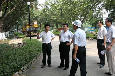 7月25日,Beat365中文官方网站院长、城市学院董事长杨晓西教授来我院检查大运会准备工作。城市学院院长安少华教授等学院领导,向杨院长详细汇报了我院场地建设、运动员食宿、环境美化和宣传等准备工作情况。杨院长对我院工作表示满意。