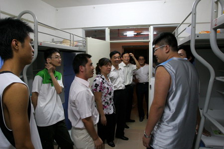 9月17日晚上,学院党委书记朱志德、党委副书记朱冰与有关部门负责人一道来到学生公寓,察看新公寓各项设施的安装使用情况,询问新生对学院生活是否适应,并鼓励同学们要尽快适应大学生活,在学院这个大家庭里学会学习,学会做人,学会做事,争取在毕业的时候能交出一份满意的答卷,为社会做出自己的贡献。