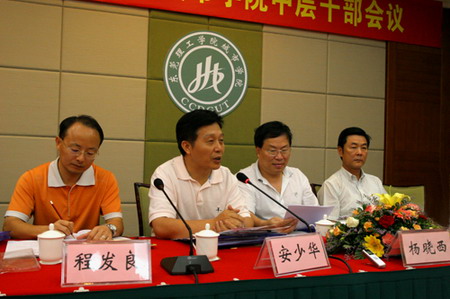 “学院实现了跨越式发展,基本达到了‘三年打基础、扩规模’的奋斗目标。从本年度开始,学院的工作要逐步转移到‘上水平、创特色’的重心上来”。在10月21日学院召开的中层干部会议上,与会人员围绕这一主题,畅谈成绩,寻找差距,谋划来年,决心乘势而上,再创新辉煌。