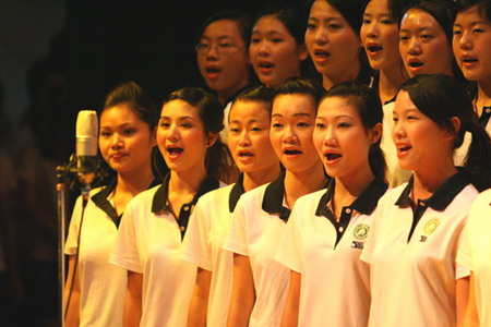我院6个系、教师合唱团和学生艺术团声乐队参加了比赛。他们包含深情地演唱了国内革命战争时期、抗日战争时期等不同时期的歌曲,《地道战》、《保卫黄河》、《山丹丹花开红艳艳》等一首首激昂高亢、铿锵有力的革命歌曲,生动地再现了一二•九运动和红军长征的伟大历史画卷和战斗业绩。比赛现场场面恢宏,精彩纷呈,营造出浓厚的革命氛围,深深感染了在坐的每一位观众。文学与艺术系演唱的《毕业歌》和《城市学院之歌》特色鲜明,精彩的表演赢得了观众热烈的掌声和评委的一致好评,被授予金奖。管理系获银奖,社会科学系获铜奖,计算机与信息科学系获道德风尚奖。
