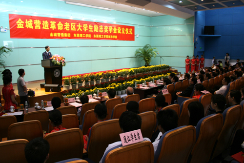 城市学院学术报告厅四壁生辉,高朋满座。4月22日,学院在这里隆重举行“金城营造革命老区励志奖学金”设立仪式,接受全国政协委员、金城营造集团总裁王国强先生百万元奖学金捐赠款。
