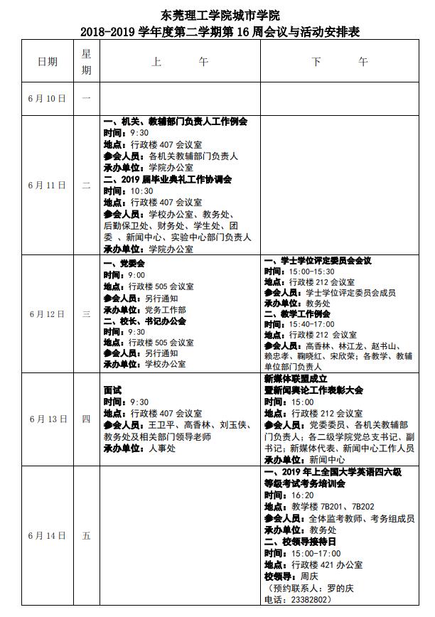 第16周会议与活动安排